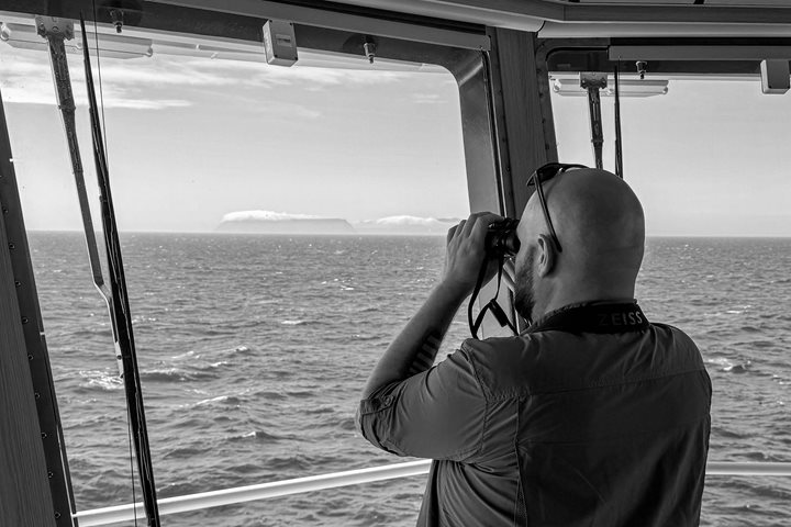 This morning, National Geographic Resolution cruised north up Davis Strait along the west coast of Greenland, en route to our first landing of the expedition. Davis Strait is the world's broadest strait and was named after John Davis who searched for the Northwest Passage in 1585. Despite travelling deep into Cumberland Sound on the southeast corner of Baffin Island, he could not find any obvious opening that would lead him to “the passage.” Davis returned the following year, but he was halted by ice as he traveled north in Davis Strait. While he did not find the Northwest Passage, his study (and mapping) of this area and the discovery of the entrance of Hudson Strait greatly increased Europe’s knowledge of the Arctic. A few years after exploring this area, John Davis sighted the Falkland Islands. The British base their claim to the Falklands on the sighting Davis made in 1592.