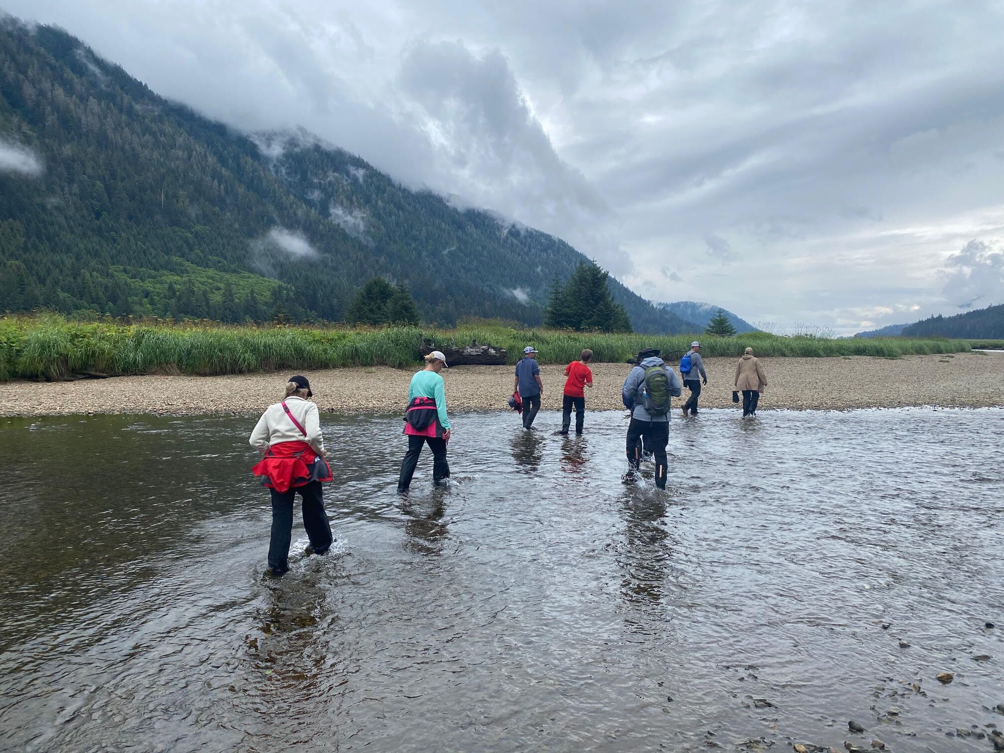 After a warm and sunny week, we finally had the chance to pull out our “Alaska” clothing in the cool breezes coming down from South Sawyer Glacier. We nourished ourselves with hearty breakfasts, bundled up in layers, and headed out on Zodiac cruises toward the face of the glacier. We coasted slowly through fields of ice, past icebergs and the curious eyes of harbor seals. We made our way to lookouts about a half-mile from the face of the glacier, and turned off the motors to patiently wait for calving events and to enjoy some silence. We were lucky to see some ice calving and even a shooter (a piece that calved from beneath the water line) while the thunderous sound echoed off the steep rock walls of the fjord. It was a spectacular scene to witness.