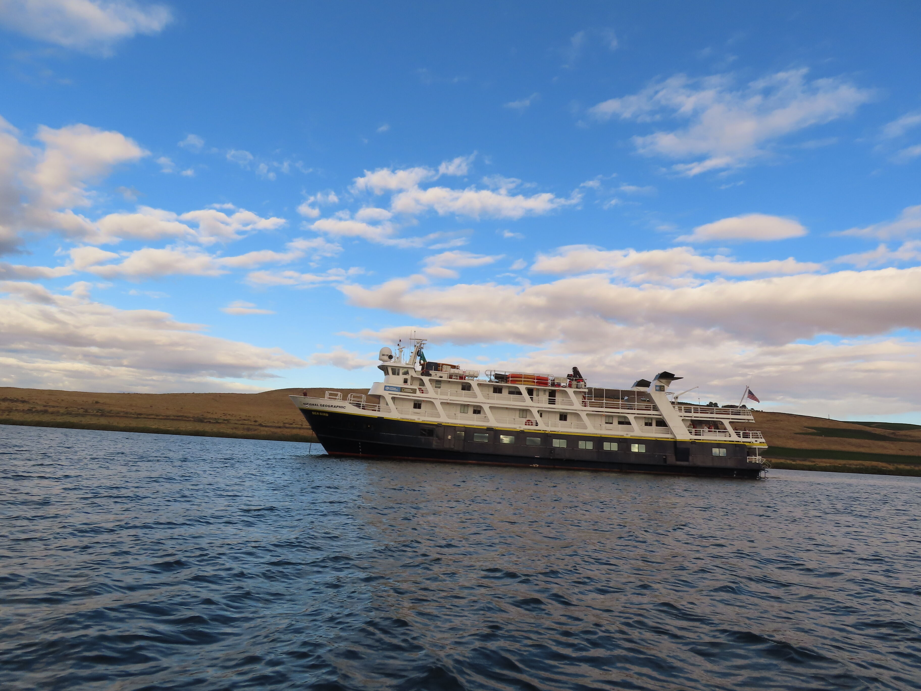 Unseasonably warm and dry weather continued to grace us as we proceeded with our expedition down the Columbia River. The morning was crisp as we disembarked in Hood River, Oregon, but quickly warmed up as we boarded our coaches. Our explorations began at Multnomah Falls, the number one tourist attraction in the state of Oregon. After we experienced this astounding cascade, some of our guests proceeded to Beacon Rock for a scenic climb up this 800-foot tall, aged lava plug. Others went to the Bonneville Fish Hatchery where we visited a local icon, Herman the sturgeon. Then both groups of explorers met at the Columbia Gorge Interpretative Center for Syncline wines and an overflowing helping of intriguing local history. As the superb weather continued, we voyaged back to National Geographic Sea Bird for a lovely afternoon of classic cruising down the Columbia River. Guests enjoyed the sun on deck or an engaging presentation on how climate change is affecting migratory birds. Complimentary water-level views of Multnomah Falls followed, and our last transit through a lock of this trip – a lovely passage through the Bonneville Lock and Dam. Photos by Doug Crispin and Alex Rubenstein