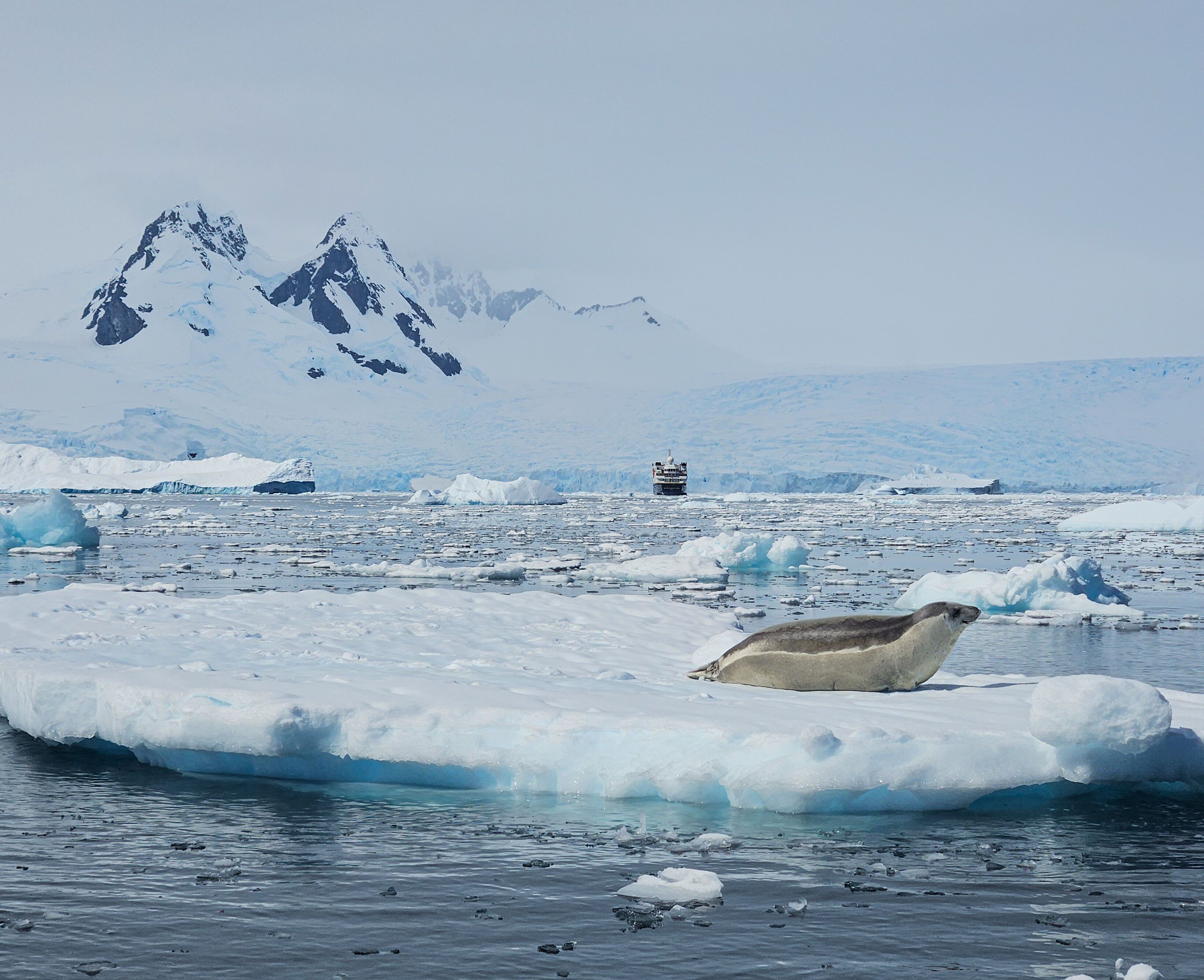 We woke up to a clear day with remarkable blue skies on the Drake Passage. The gentle conditions combined with the capabilities of National Geographic Resolution made for a smooth sailing across this famous body of water. Crossing the Drake has become a rite of passage that sets the tone of our adventure exploring the Antarctic Peninsula. In the morning, we met the expedition team and learned about the birds that we hope to see on our voyage. After lunch, the photography team presented two interesting talks with tips and useful information that helped us prepare for capturing the best moments of our upcoming experience. At the end of our day, expedition leader Dan gave us an overview of our first day of operations in the South Shetland Islands, followed by Captain Heidi, who warmly welcomed us all to the ship and introduced us to the crew. We are all looking forward to our first sightings of the White Continent and are more than ready for what promises to be an unforgettable experience.