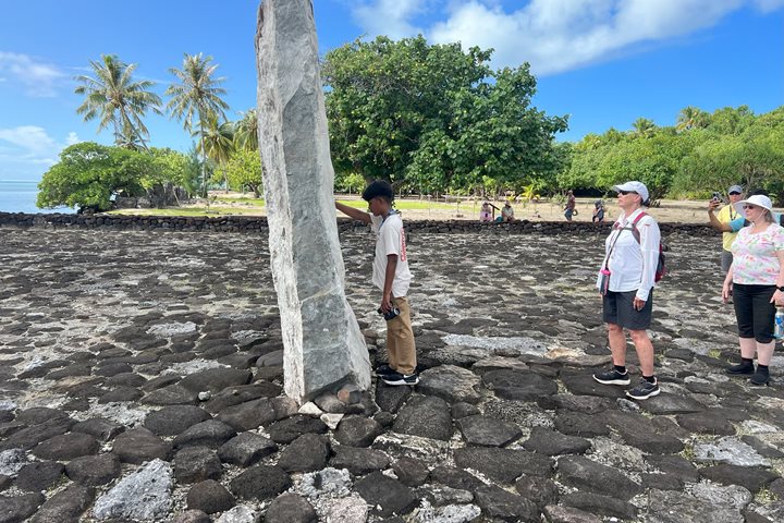 A barbeque lunch was prepared for us at Anakena Beach, complete with an elegant setup of tents, chairs, and tables with white linen tablecloths. The food consisted of various delicious Polynesian specialties, which were interspersed with other buffet goods. In the later afternoon, some guests went directly back to their hotels, some went to the main town center, some stayed longer at the beautiful white sand beach and coconut plantation for swimming, and several continued on farther up the coast to hike to Ahu Te Pito Kura. Pito Kura is significant, because here was the largest moai ever erected, but unfortunately it is now broken and in ruin. A large spherical stone located nearby is a bit of an enigma, as the archeologists don’t know what it was used for. Everyone returned to their respective hotels for dinner, where after some came back out to make the most of a nice, starry sky above.