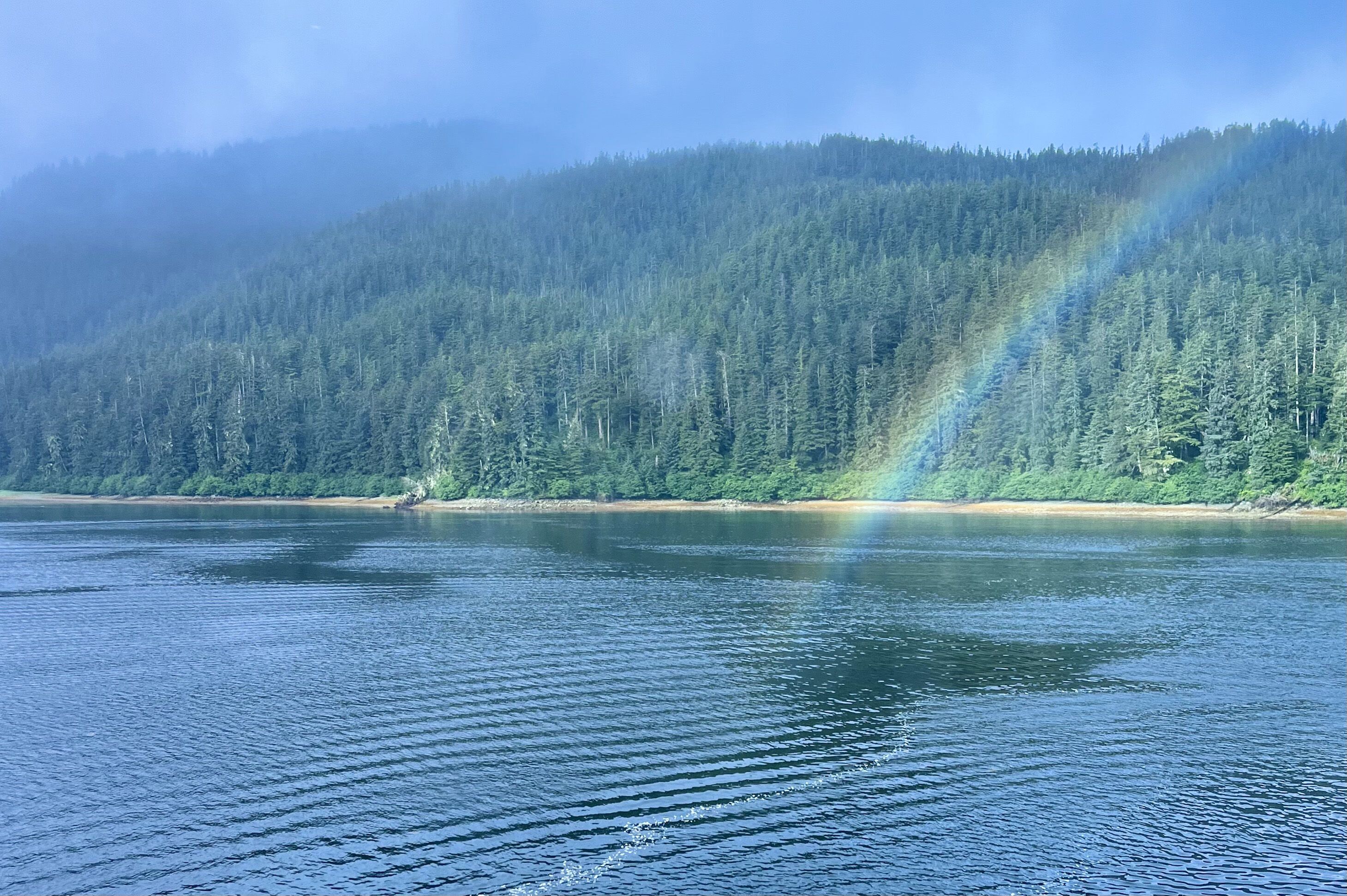 A small contingent of early risers, with their breath and cups of coffee steaming, smiled as if some secret, unknown to the rest of the ship, had been whispered in their ears. We were gathered on the bow, witnessing the curtain of a cool morning sun creep slowly across the south faces of domed rocks in the east. Blue-tinged glacial ice bobbed in the cold water, rocking gently in the ripples of our slowly spreading bow wake. Somewhere in the distance, a bald eagle greeted the dawn with a high-pitched chortle.