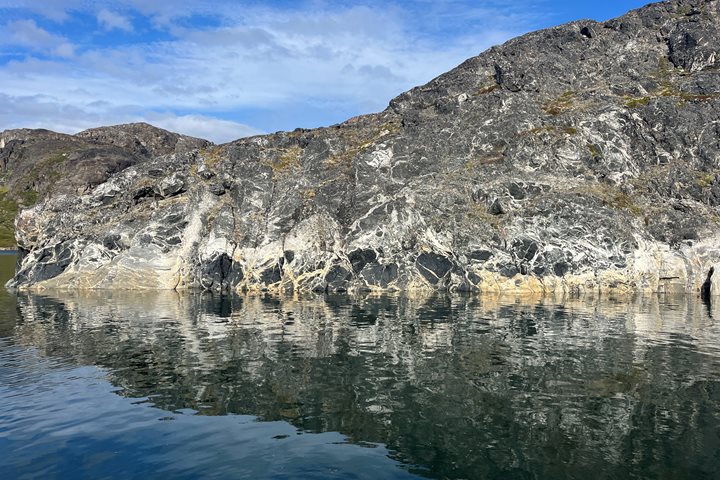 The day began with a Zodiac operation of the Inukassaat Fjord, north of Uummannaq. As we were greeted with the grand mountains of the west Greenland fjords, the icebergs made loud sounds of calving and the variety of birds flying over the landscape reminded us how vast the fjord is.