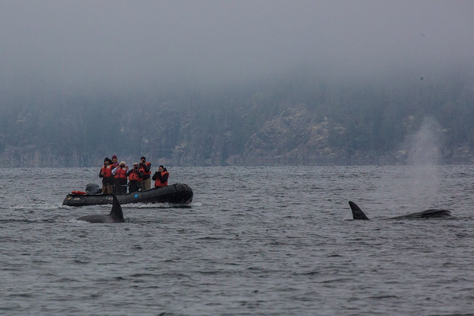 The forecast for wind and weather was not off to a strong start on Friday morning approaching the San Juan Islands. But strong winds and unpredictable rains did not stop us. This is a National Geographic-Lindblad expedition, after all! Rolling with the punches is what we do best. And today it meant a morning of braving the conditions for adventurous Zodiac tours outside Roche Harbor and an afternoon of exploration on land to a sculpture garden and hauntingly eery mausoleum. Our morning Zodiac tours jetted through Mosquito Pass and circumnavigated Henry Island. Beachfront homes and luxury yachts would not satiate our need for wildlife discovery and as we cruised around the southern tip of Henry Island, Naturalist Eric Guth spotted a mass of gulls and seabirds collecting atop a suspected bait ball below the bellowing ocean surface. No one knew what to expect when all five Zodiacs zipped and zig-zagged up to the dazzling zenith of these buzzing birds ablaze with hunger, but our mildest expectations were quite literally blown out of the water. For what would gently plop up but one of the most beautiful and elusive pelagic birds of the area, the ancient murrelet! This was a bird I’d been searching for all year, a lifer or first-time bird for me. It has a small, football-shaped body, a yellow beak, and little white eyebrows. Like all unexpected and great things, it was no coincidence that this happened on the last Zodiac tour of the last trip of the last itinerary of the season in the Pacific Northwest. And it was a joy to be able to share it with everyone here!