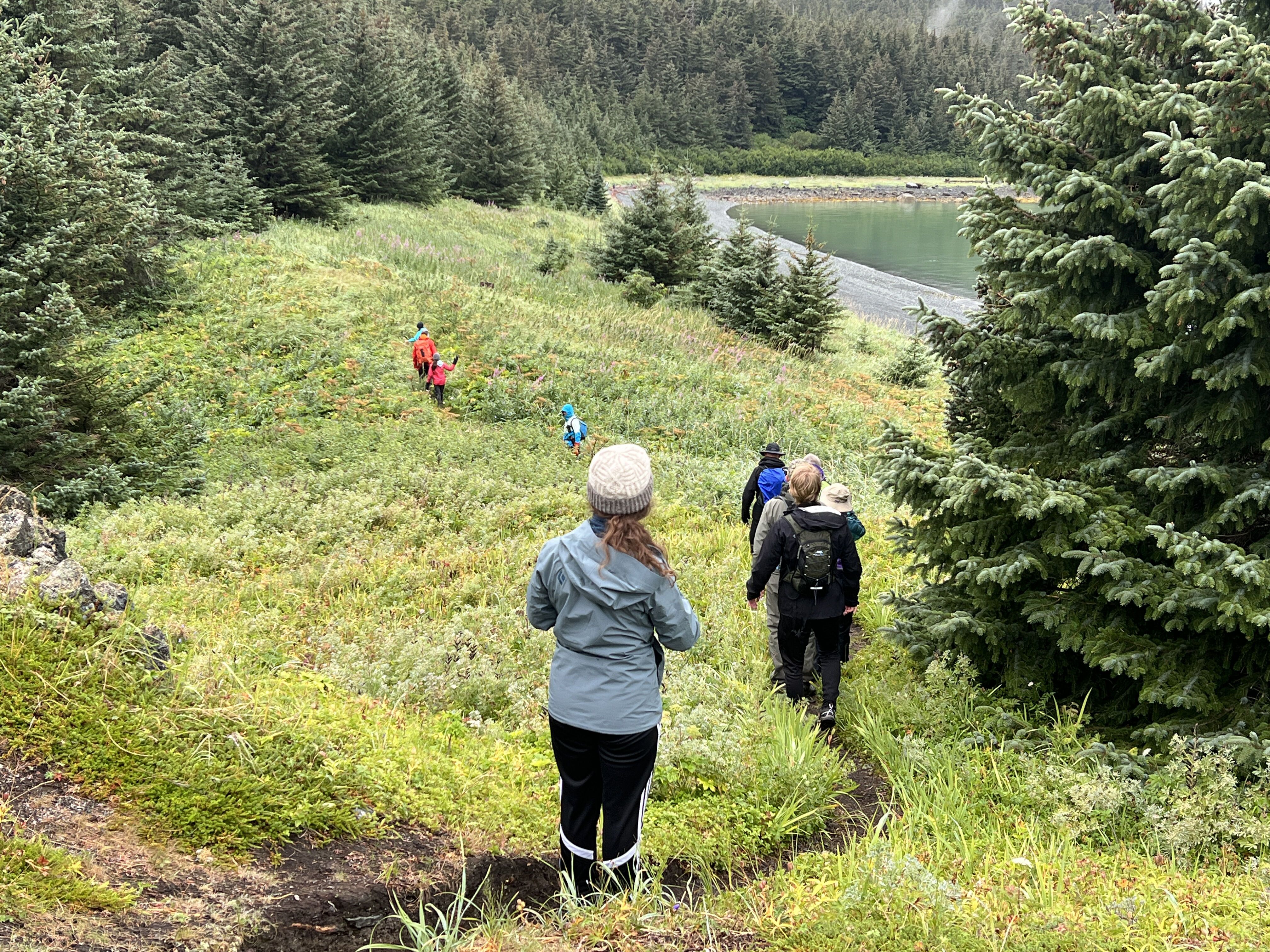 Our amazing expedition leader, Dana, tells us at breakfast what she has planned for us, and we all cheer as the day’s activities are explained. First, a tour of the Stikine River via jet boat with two destinations: Chief Shakes Lake and Shakes Glacier! Breathtaking Sitka spruce filled forests are kissed with low hanging clouds, and we encounter bald eagles and heaps of harbor seals on our way to and from Shakes Glacier. Next, we head to Chief Shakes Big House, which is set on one of the most sacred bits of land in Wrangell for the Tlingit tribe, Shakes Island. Here we are met by an elder of the Tlingit tribe, Virginia, who teaches us a bit about their lives, traditions, stories, and history. We are invited to enter ‘Chief Shakes Big House,’ a sacred house where many important things take place, all tribal related. Only those invited are allowed to enter this house, and we are welcomed guests. Jaw-droppingly magnificent totem poles are all around this bit of land. The Tlingit tribe does not typically upkeep their totem poles. They believe that once the carving is completed, the earth will slowly take back the totem, returning the wood to Mother Earth. They follow this same practice with their homes. Rather than remodel, they allow the earth to reclaim the materials used to make the home and then build a new one.