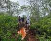 Today we planned on an early pre-breakfast outing, but we had to wait out the rain onboard the ship. On the riverbank, we spotted an iguana right next to the ship. It was the perfect opportunity for pictures. Later in the morning, we explored a hidden lagoon next to Yanayacu River. We navigated through the floating vegetation and found an abandoned horned screamer nest. We could see eggs from up close.